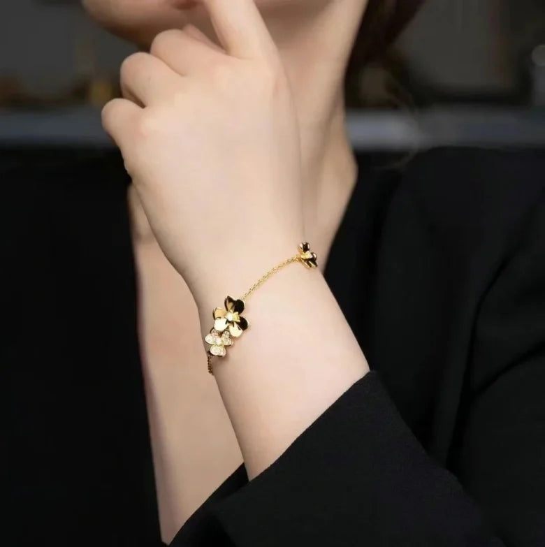 Gold Flower Bracelet, Frivole bracelet, 5 flowers